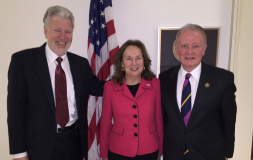 We also met with Congressman Jim Bridenstine (OK-1), a FAIRtax CoSponsor, and his Tax Legislative Assistant Sheryl Kaufman to discuss his assistance with the House Freedom Caucus, since he is a member. With 20 of their 37 members already FAIRtax CoSponsors, the Fair Tax Act appears to be legislation that the rest of their members would likely embrace. In addition, we updated him on our meeting with Chairman Brady. Pictured below are Congressman Bridenstine, Steve and me.